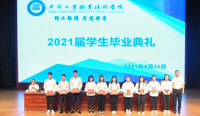 6月30日晚,畢節(jié)工業(yè)職業(yè)技術學院2021屆畢業(yè)典禮暨第一屆學生技能大賽頒獎儀式在會議中心舉行。現場800余名師生共同慶祝畢業(yè)季,一起告別令人難忘的青春歲月。學院黨委書記李涌出席典禮并真情寄語畢業(yè)生。黨委副書記、院長邱國援主持典禮。黨委副書記付善華及黨委班子成員黃瑛、吳家文、黃河、申開谷、余斌出席典禮。