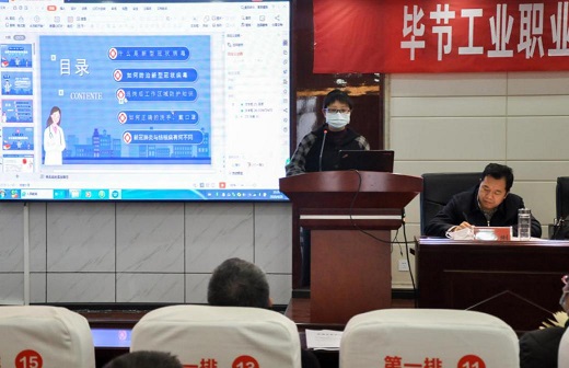 副院長黃河就《畢節工業職業技術學院2020年開學工作方案》《畢節工業職業技術學院新冠疫情防控工作方案》《畢節工業職業技術學院新冠疫情防控應急預案》進行解讀,要求加強組織管理和統籌調度,建立健全上下一體聯動機制,明確職責分工,確保新學期開學疫情防控策略和應急處置措施扎實有效實施。