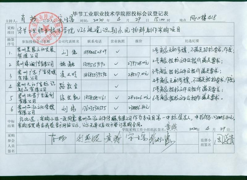 畢節工業職業技術學院VIS視覺識別系統物料制作采購項目第二中標候選人順延為第一中標候選人的公告