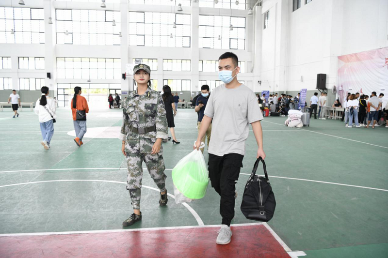 (新生在校門口掃描健康碼,憑綠碼進入學校)