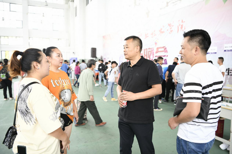 (畢節工業職業技術學院黨委副書記、院長邱國援與學生家長交談)