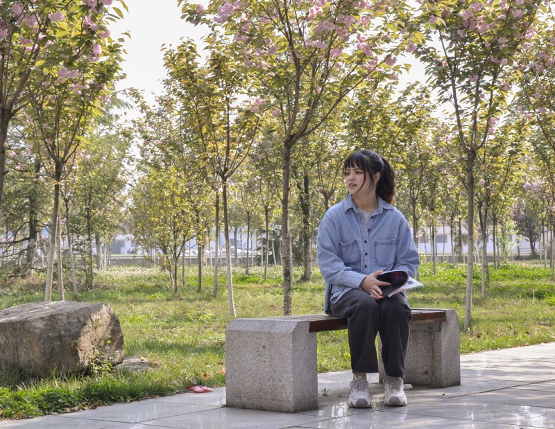 在校園櫻花樹下相遇