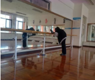 舞蹈社成員熱身(跑步)、基本功(壓腿等)是每節課必不可少的,為了增加同學們的柔韌性,了解動作的要領,使舞姿更加優美,同時加強成員對舞蹈的興趣,在舞蹈基本動作初步具有健美體態,我們將成員分成男女兩個隊分別進行壓腿、開肩、丁字位站姿等形體動作。