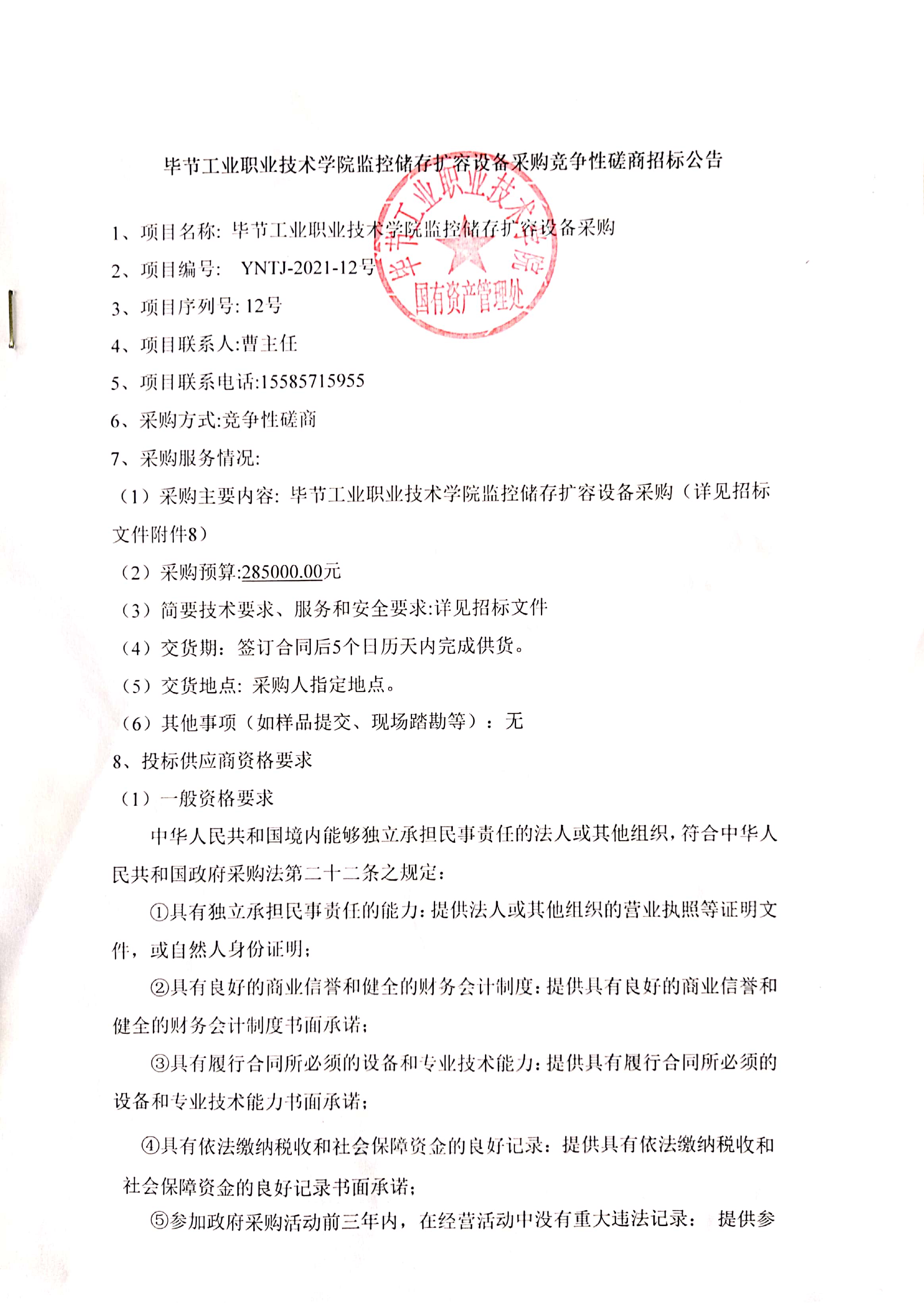 畢節工業職業技術學院監控儲存擴容設備采購競爭性磋商招標公告