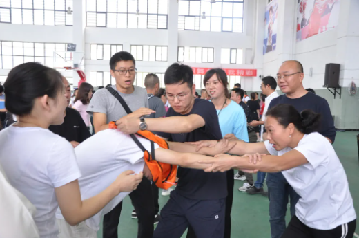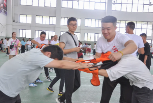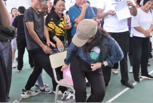 活動共設置了連環穿衣、同心鼓、坐爆氣球和拔河四個項目,參與教師分為八個小組進行比拼?,F場笑聲不斷,充滿了熱鬧的氣氛,歡呼聲、加油聲、吶喊聲此起彼伏。
