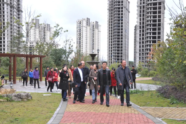 ▲學院領導陪同與會老同志們步行參觀拓海學院