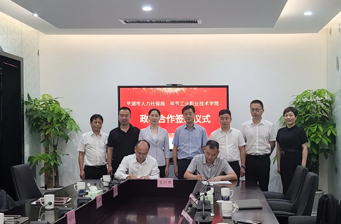 ▲院長邱國援代表學院與平湖市人社局簽訂校政合作協議