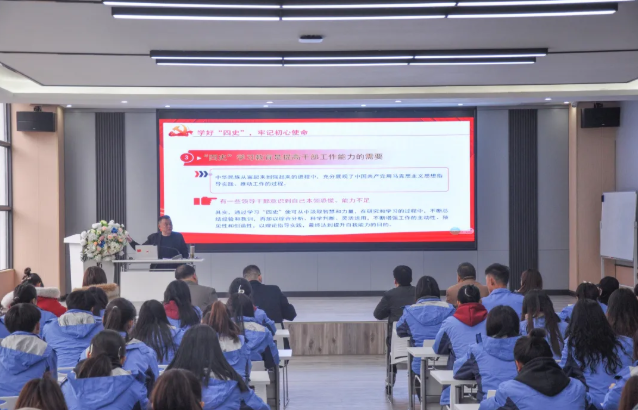 邱國援從“學好‘四史’,牢記初心使命”“黨史是中國共產黨領導不斷走向成熟的實踐史”等五個方面,深情講述了中國共產黨帶領人民攻堅克難,不斷推進我國各項事業的健康發展,引領新中國走上了國家富強、人民幸福的正確道路,引導師生從黨的百年偉大奮斗歷程中汲取前進的智慧和力量。