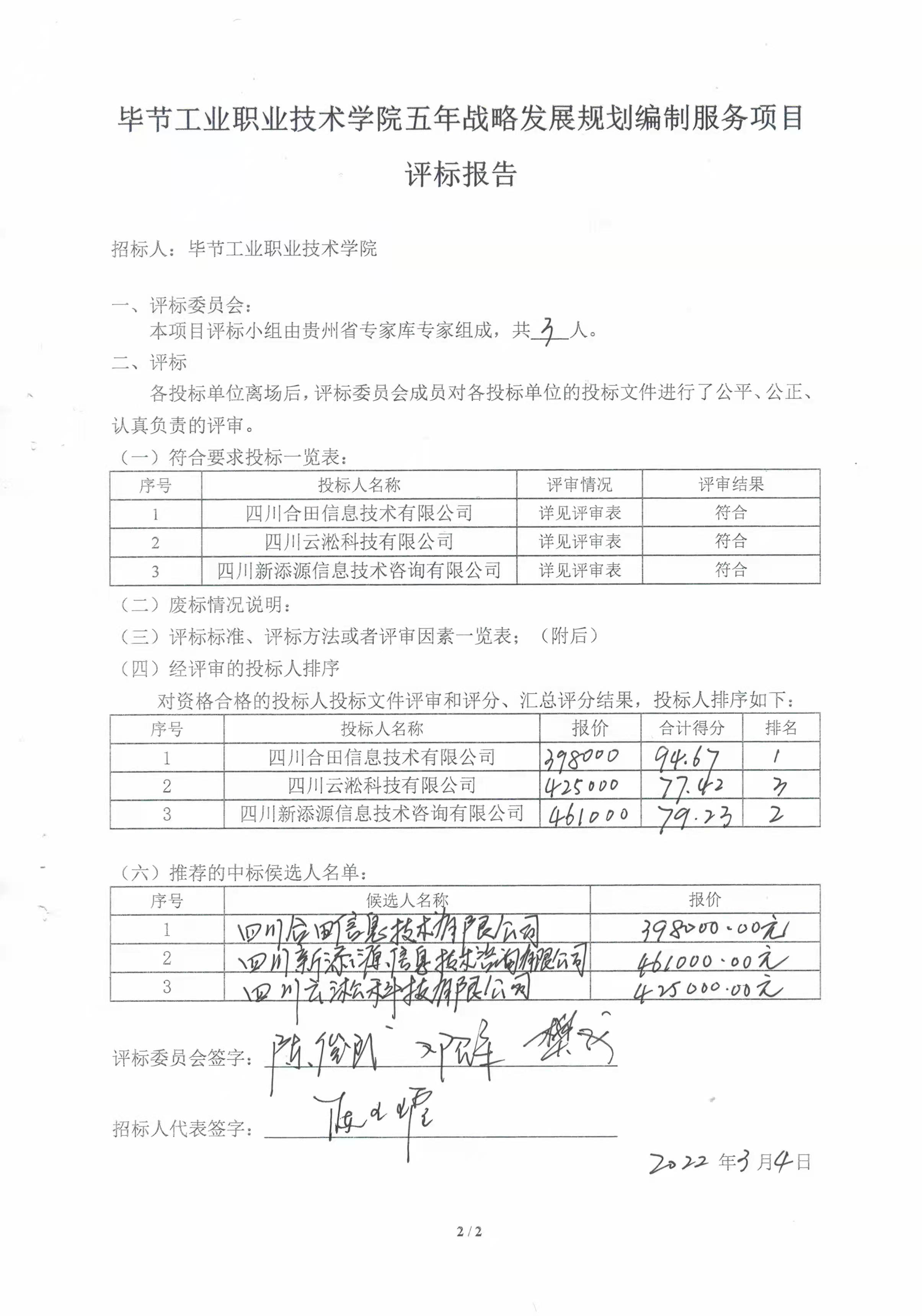 畢節(jié)工業(yè)職業(yè)技術(shù)學(xué)院五年戰(zhàn)略發(fā)展規(guī)劃編制服務(wù)項(xiàng)目評(píng)標(biāo)報(bào)告