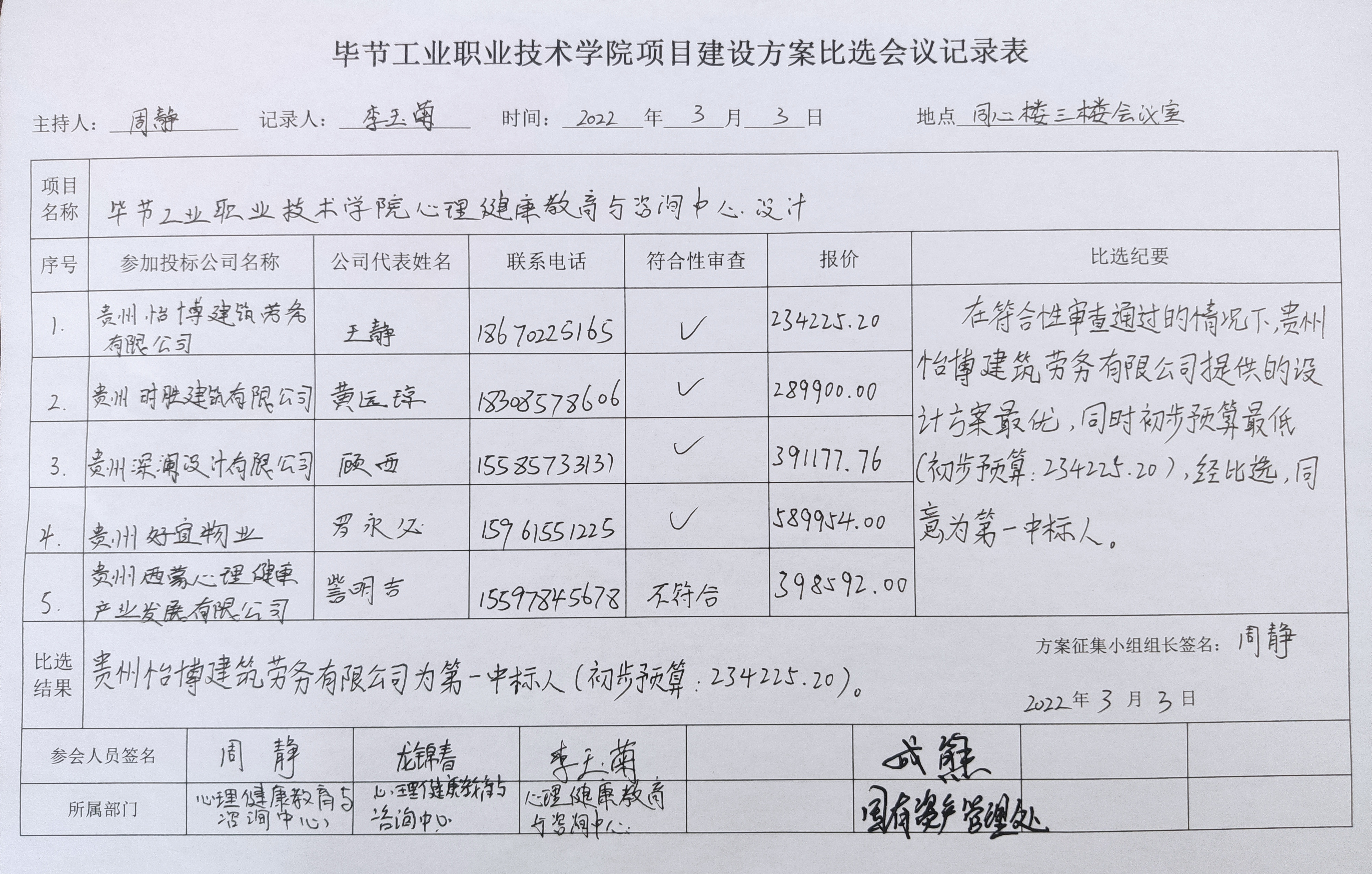 畢節工業職業技術學院心理健康教育與咨詢中心設計方案 比選結果公示