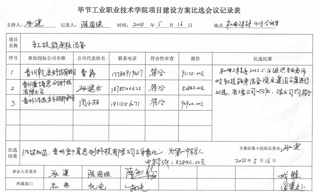 畢節工業職業技術學院機電一體化(中職組)省賽設備設備項目征集方案比選結果公示