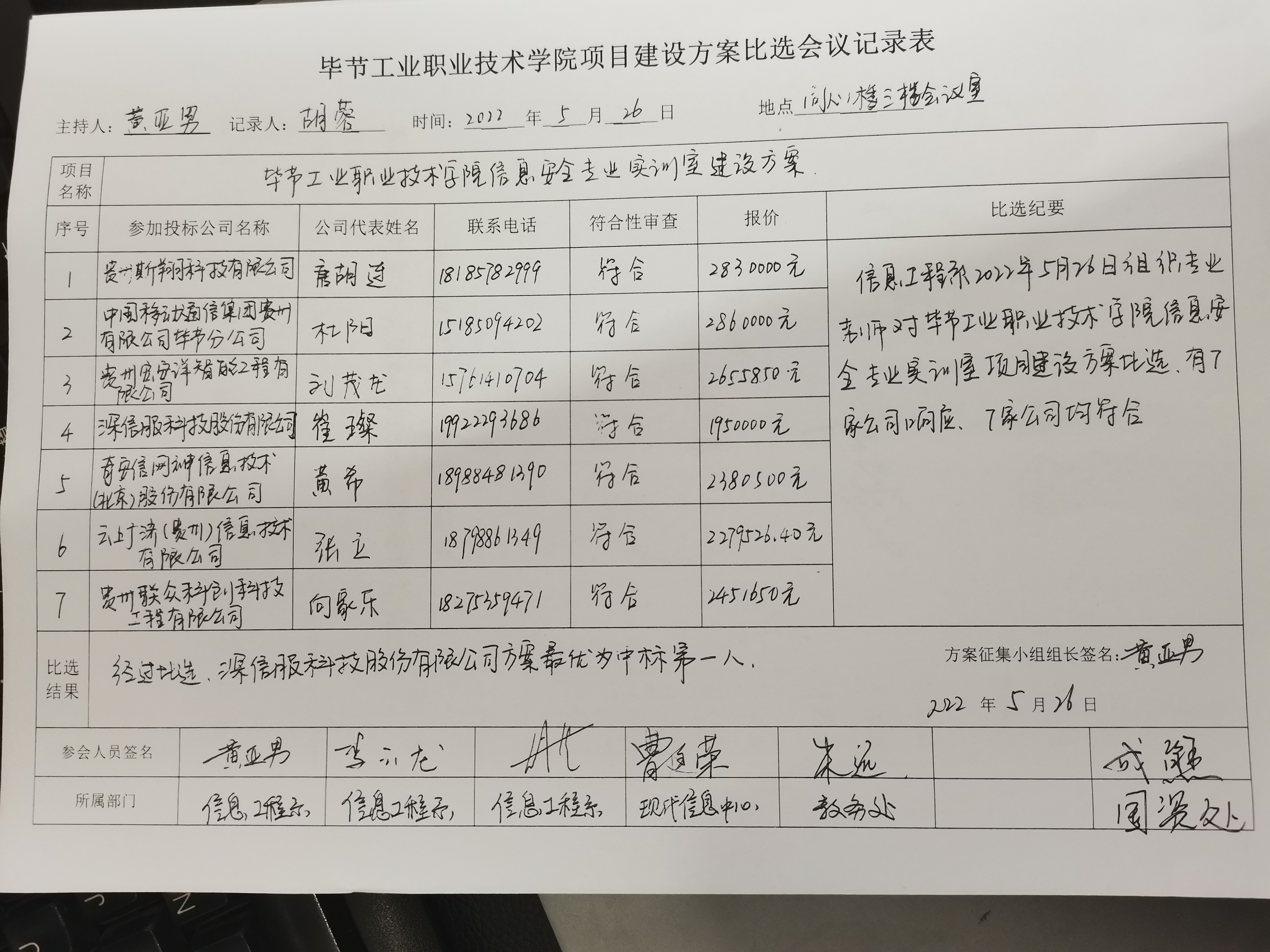 畢節(jié)工業(yè)職業(yè)技術(shù)學(xué)院信息安全專(zhuān)業(yè)實(shí)訓(xùn)室建設(shè)項(xiàng)目征集方案比選結(jié)果公示