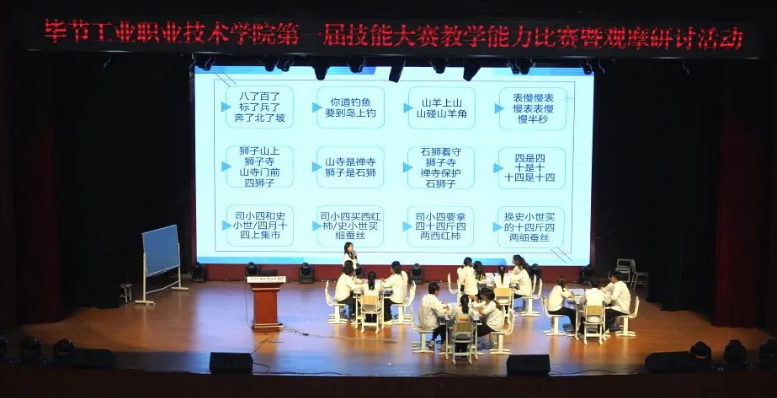 2022年6月29日,畢節工業職業技術學院第一屆技能大賽教學能力比賽在會議中心圓滿舉行。此次競賽以提升教師的教學能力為主旨,力求讓我院教師進一步樹立先進教育教學理念,應用現代教學方法,堅持知識傳授、能力培養與價值教育相結合,助推學院高質量內涵式發展。