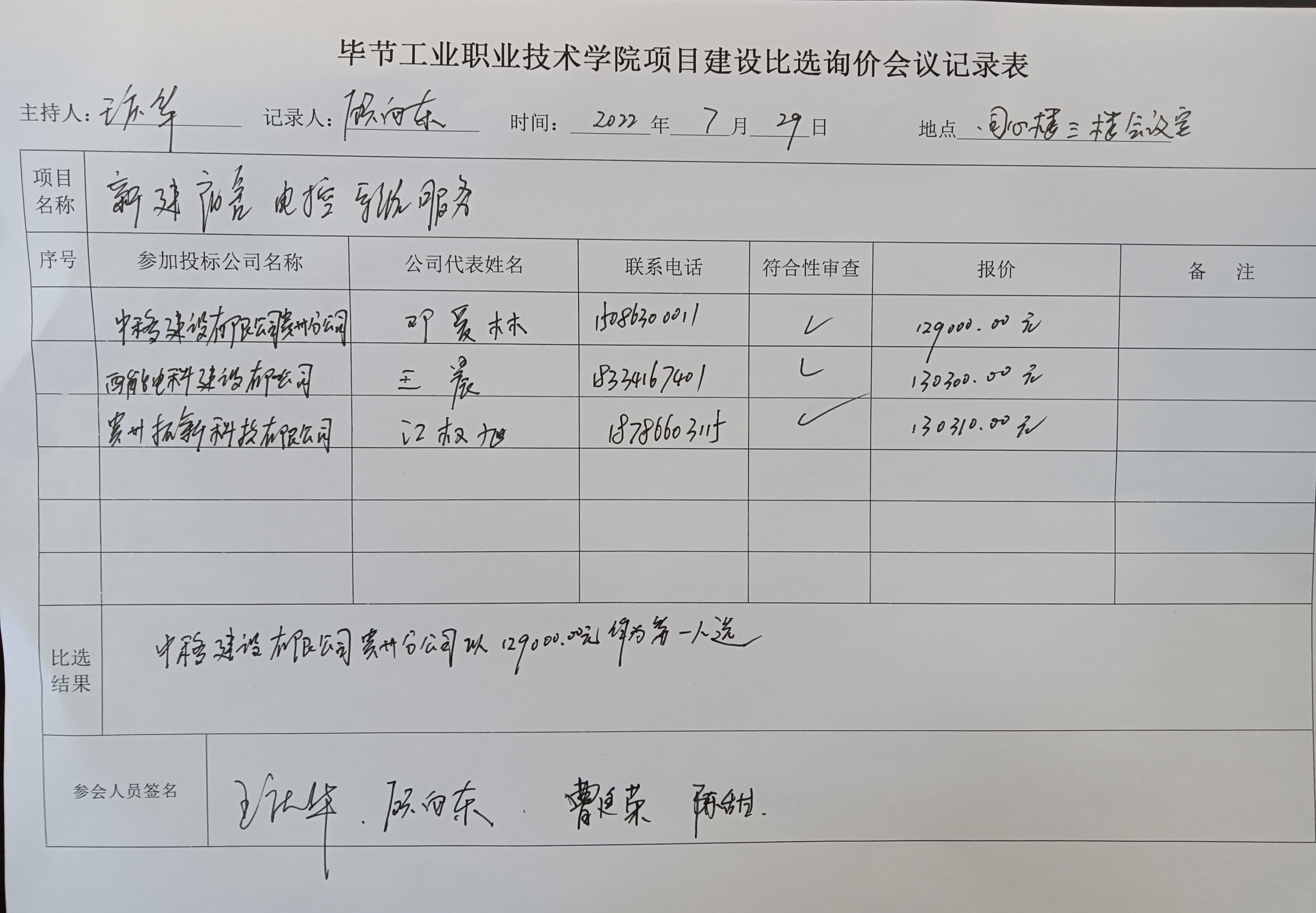 畢節工業職業技術學院新建學生宿舍樓電控系統服務詢價結果公示