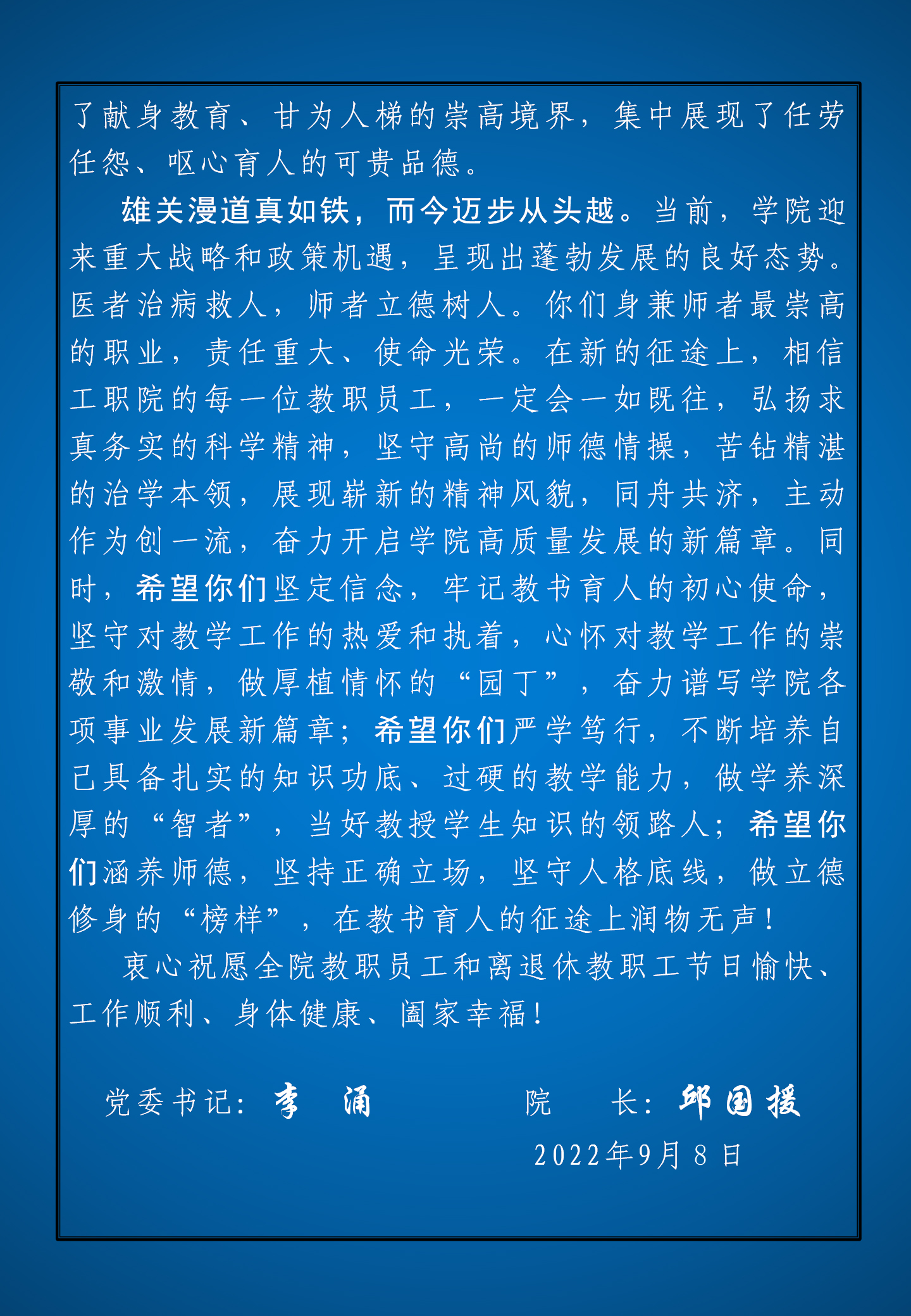 在第38個(gè)教師節(jié)致畢節(jié)工業(yè)職業(yè)技術(shù)學(xué)院全體教職工的慰問信