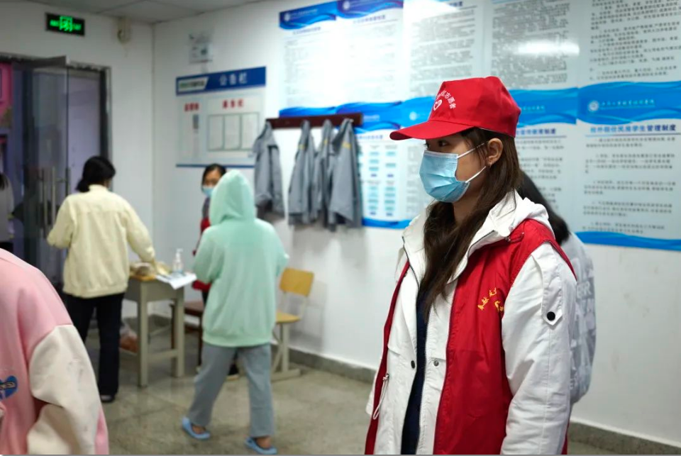 “疫”路奔跑的精靈 廖慧同學(xué)系畢節(jié)工業(yè)職業(yè)技術(shù)學(xué)院信息工程系大數(shù)據(jù)技術(shù)與應(yīng)用專業(yè)學(xué)生,共青團員,志愿者。自實行靜默管理以來,廖慧主動申請加入了學(xué)院靜默管理志愿者服務(wù)隊,擔(dān)任宿舍生活區(qū)二期四號樓的志愿者小組長。 九月的畢節(jié),秋風(fēng)微涼。廖慧不怕冷,不怕黑,似乎比平時堅強勇敢了許多,每天早晨,天還未亮,她就第一個起床,穿上志愿者服裝,開始準(zhǔn)備工作。 “在這場沒有硝煙的戰(zhàn)爭中,我和老師們一起沖鋒陷陣,測量體溫、統(tǒng)計信息、匯總數(shù)據(jù)、維持秩序、通知同學(xué)。凌晨兩點,學(xué)校臨時通知全員核酸檢測,作為志愿者,凌晨一點就得起床做準(zhǔn)備,到各個寢室敲門提醒同學(xué),在奔跑途中,鞋子都來不及穿好,又一間一間寢室的統(tǒng)計學(xué)生在寢人數(shù),為同學(xué)們發(fā)放口罩,提醒她們多穿衣服注意保暖……”“這次參加志愿者服務(wù),讓我收獲了很多感動,感恩老師們精心的呵護;感恩不遠千里前來支援的醫(yī)護人員;感恩每一個在冷雨中穿行的身影;感恩一日三餐為我們幫前幫后的食堂工作人員……”,廖慧同學(xué)激動地說。 “同學(xué),注意間隔距離2米。”“同學(xué),請打開貴州健康碼掃描二維碼。”“同學(xué),請有序排隊”“同學(xué),請戴好口罩,間隔2米”。從宿舍樓到醫(yī)務(wù)室來回的奔跑,完成核酸工作已是凌晨三點多,天很冷,身體也略顯疲憊,可是廖慧同學(xué)并沒有停下,馬上又投入到核酸采樣的數(shù)據(jù)核實之中…… 廖慧同學(xué)的身后,核酸采樣工作還在繼續(xù),同學(xué)們整齊有序地矗立雨中等待,宛如一棵棵接受秋雨洗禮的青松,以昂揚的姿態(tài),迎接清晨的曙光。