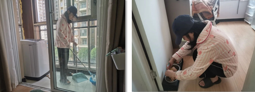 實行靜默管控以來,機電工程系老師陳榮雪,每天忙碌于給在校進行疫情防控工作的老師們收拾屋子,整理家務。掃地、澆花、倒垃圾、喂寵物,甚至是熬豬油、洗衣服……把老師們家里的一切打理得井井有條。