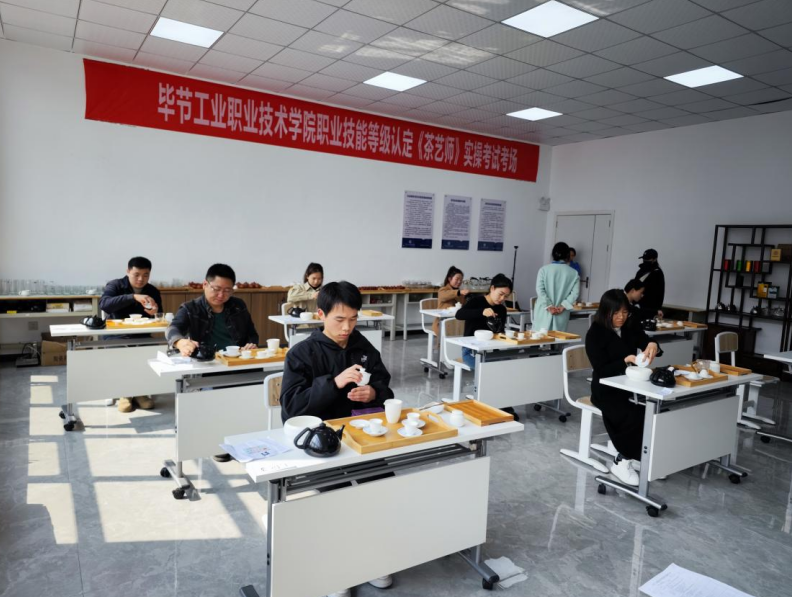 本次考試工作由學(xué)院職業(yè)技能等級認定中心牽頭組織,社會服務(wù)系部負責(zé)實操器具耗材及鑒定場地等籌備。3月4日上午進行茶藝師理論知識考試(計算機考試),下午進行茶藝操作技能考核。全部通過者可獲得由國家人力資源和社會保障部頒發(fā)的職業(yè)技能等級證書。