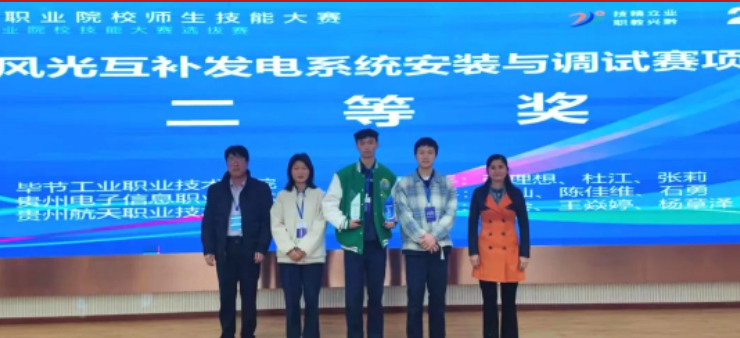 2023年貴州省職業(yè)院校師生技能大賽第一輪比賽已圓滿結(jié)束。我院各參賽隊(duì)以良好的業(yè)務(wù)素質(zhì)和精神面貌在各項(xiàng)比賽中表現(xiàn)優(yōu)異,共取得一等獎(jiǎng)1項(xiàng)、二等獎(jiǎng)10項(xiàng)、三等獎(jiǎng)10項(xiàng)的好成績(jī)。其中,由張建、田鳳老師指導(dǎo),張理想、杜江、張莉同學(xué)參與的風(fēng)光互補(bǔ)發(fā)電系統(tǒng)安裝與調(diào)試競(jìng)賽項(xiàng)目取得參加全國(guó)職業(yè)院校技能大賽資格。
