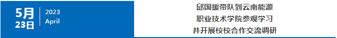 5月23日,學院黨委副書記、院長邱國援,黨委委員、副院長吳家文一行到云南能源職業技術學院參觀學習并開展校校合作交流調研,共同探討實訓基地建設、專業課程設置、產教融合等辦學經驗。