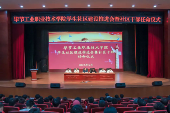 5月24日,畢節工業職業技術學院學生社區建設推進會暨社區干部聘任儀式在多功能廳召開,正式成立了學院社區管理委員會,標志著我院黨建引領“一站式”學生社區綜合模式建設正式啟動。