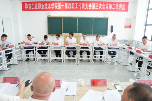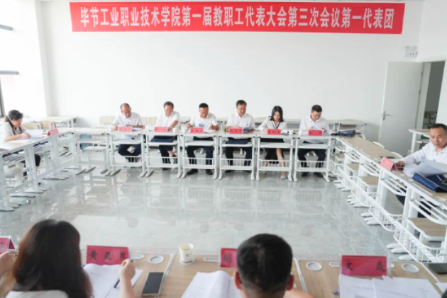 6月27日—28日,畢節(jié)工業(yè)職業(yè)技術(shù)學(xué)院第一屆第三次教職工代表大會(huì)(以下簡稱大會(huì))在拓海學(xué)院二樓會(huì)議室召開。黨委書記李涌,黨委副書記、院長邱國援,黨委副書記付善華,院領(lǐng)導(dǎo)黃瑛、黃河、向陽、申開谷、余斌及相關(guān)大會(huì)主席團(tuán)成員出席并在主席臺(tái)就座。70余名教職工代表參加會(huì)議。