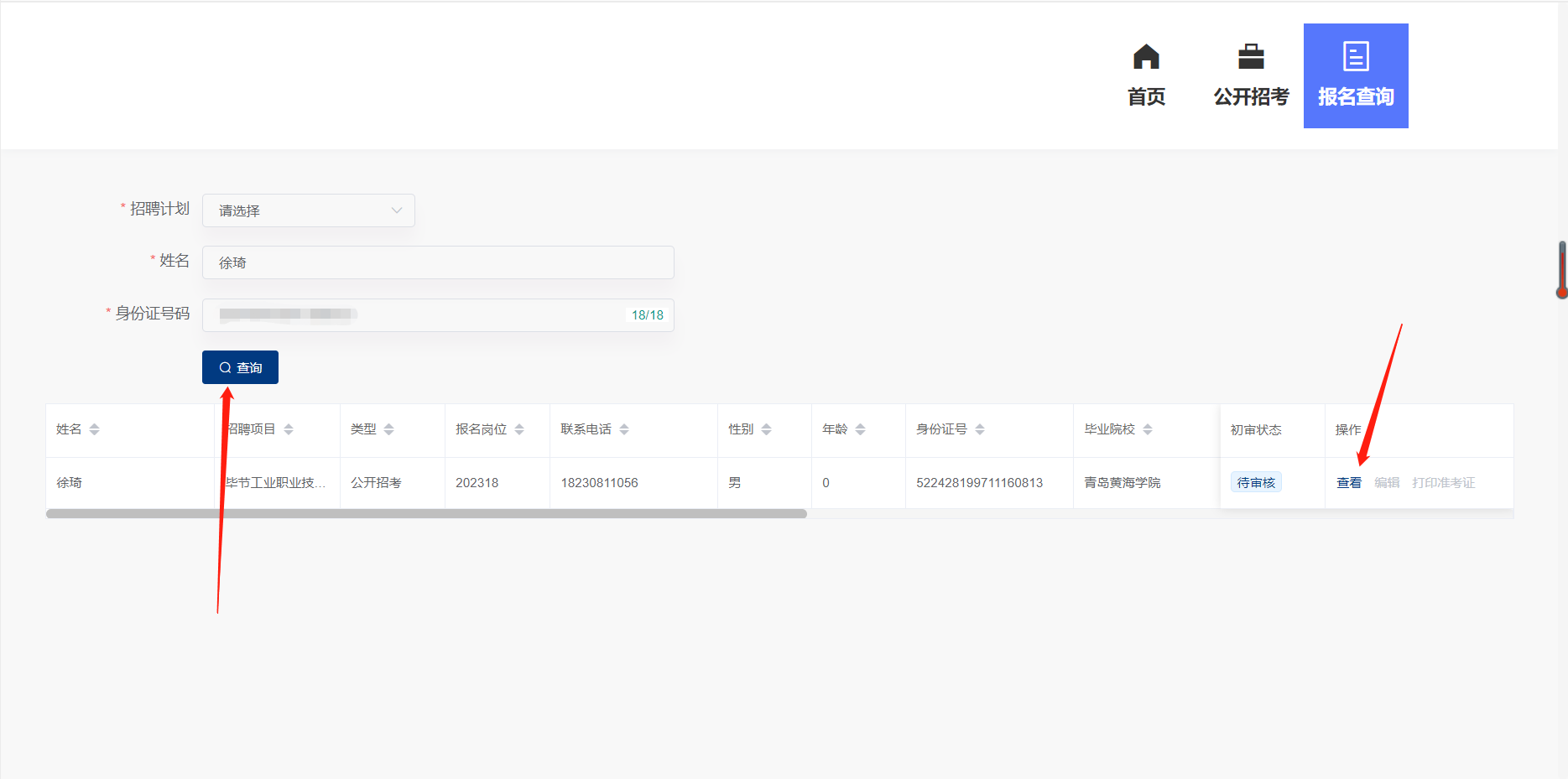 輸入姓名+身份證件號(hào)查詢報(bào)名信息是否存在