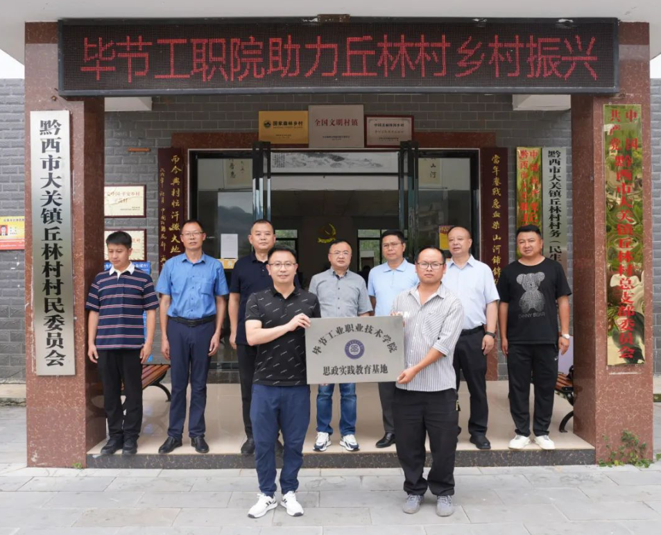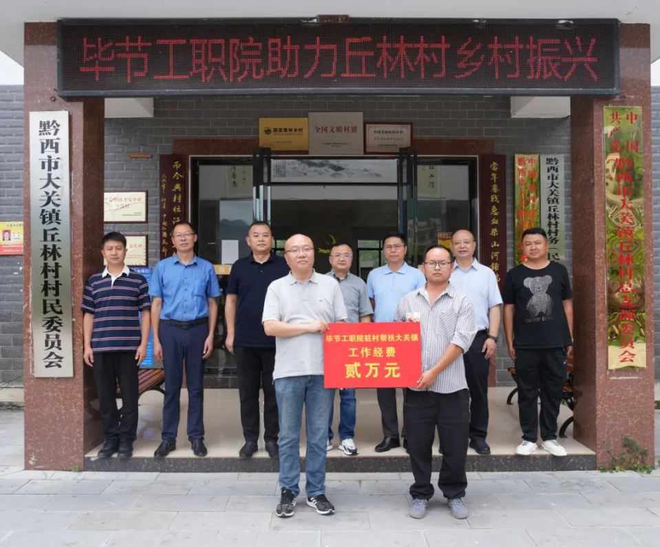 會后,學院與丘林村舉行了畢節工業職業技術學院思政實踐教育基地、學生社會實踐基地授牌儀式,并劃撥駐村工作經費2萬元。