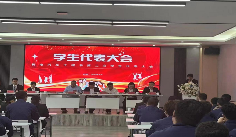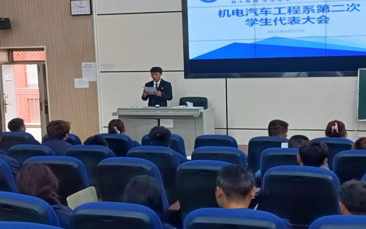 2023年6月15日,畢節工業職業技術學院機電汽車工程系第二次學生代表大會在括海學院二樓會議室召開。第一階段,到會的領導及嘉賓一同奏唱國歌,機電工程系負責人張建為大會致開幕詞,院團委負責人伍紹平老師宣讀了團委批復,系部黨總支張禾書記宣讀黨總支批復,宣讀完畢后到會領導及嘉賓進行了合影留戀。