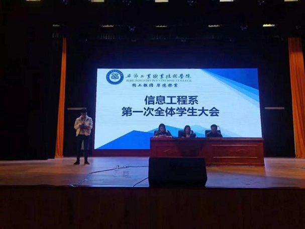 為進一步加強系部管理與建設,畢節工業職業技術學院信息工程系于2019年12月19日在學院會議中心召開學生大會,到場的有信息工程系負責人黃亞男,系學生科胡蓉、潘愚老師、各班班主任及信息工程系全體學生。