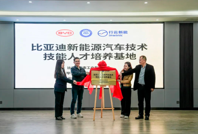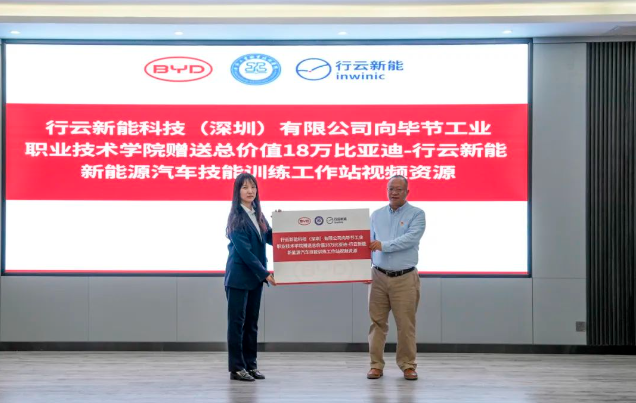 (會議現(xiàn)場) 會上,邱國援介紹了畢節(jié)工業(yè)職業(yè)技術(shù)學院發(fā)展現(xiàn)狀、辦學特色、辦學理念等情況,并指出希望通過發(fā)揮企業(yè)的市場、技術(shù)、設(shè)備等方面優(yōu)勢,共建人才培養(yǎng)基地,為學院相關(guān)專業(yè)學生提供優(yōu)質(zhì)技能學習條件,進一步推動校企合作,深化產(chǎn)教融合,實施人才精準培養(yǎng)、企業(yè)精準招聘,促進人才鏈與產(chǎn)業(yè)鏈無縫銜接,探索校企合作辦學模式與運行機制,創(chuàng)新技術(shù)技能人才培養(yǎng)體系,豐富職業(yè)教育內(nèi)涵建設(shè),進一步發(fā)揮職業(yè)教育優(yōu)勢服務(wù)社會、行業(yè)、企業(yè)。 蔣平指出,希望與畢節(jié)工業(yè)職業(yè)技術(shù)學院在“產(chǎn)、學、訓”等方面密切合作,創(chuàng)新人才培養(yǎng)模式,共同培養(yǎng)更多高素質(zhì)、高技能的應(yīng)用型人才,促進共同發(fā)展。 王克靜指出,將在下一步的合作中提供全產(chǎn)業(yè)鏈人才培養(yǎng)生態(tài)系統(tǒng)服務(wù)整體解決方案,與學院、比亞迪共同開發(fā)課程與教材,優(yōu)化課程體系,搭建“產(chǎn)、學、研”服務(wù)平臺,推動人才培養(yǎng)模式改革、管理體制機制創(chuàng)新,助力培養(yǎng)企業(yè)所需的高素質(zhì)技能人才。 (簽約儀式) 基地投入使用后,校企雙方將共同制定人才培養(yǎng)方案,通過企業(yè)工程師入校教學、教師定崗實習培訓,實現(xiàn)教師技術(shù)技能和教學能力雙提升,利用行業(yè)標準和企業(yè)、社會資源提高專業(yè)建設(shè)標準,打造高質(zhì)量行業(yè)人才培養(yǎng)體系,切實提升我院人才培養(yǎng)質(zhì)量和水平。 (揭牌儀式) (授牌儀式) 會上,畢節(jié)工業(yè)職業(yè)技術(shù)學院還與比亞迪汽車股份有限公司、行云新能科技(深圳)有限公司舉行了簽約、揭牌、授牌儀式及新能源技術(shù)技能工作站捐贈儀式。 (捐贈儀式)