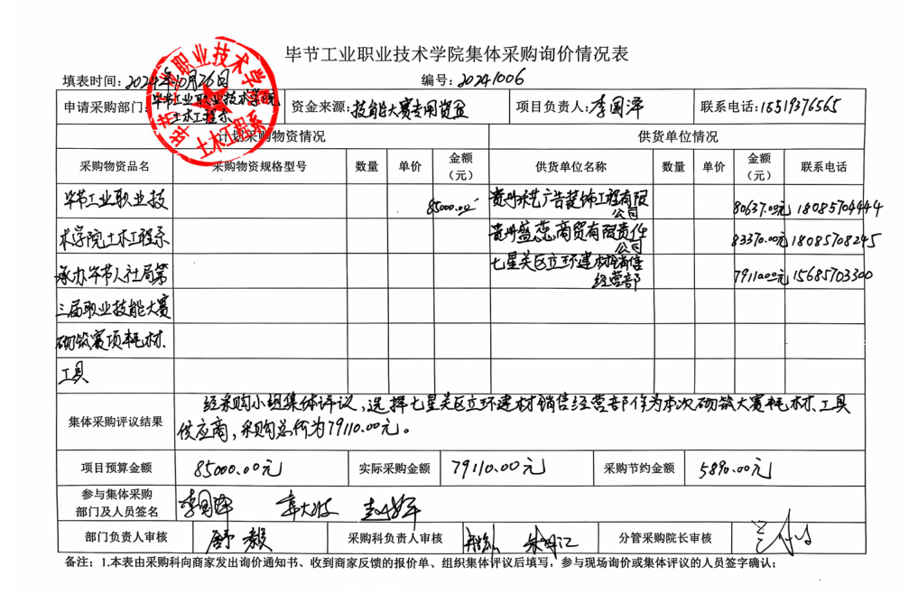 土木工程系承辦畢節市人社局第三屆職業技能大賽砌筑賽項耗材、工具詢價情況公告