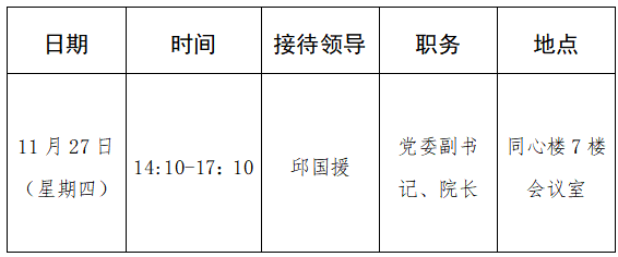 為進一步加強學院信訪維穩工作,推動學院領導深入基層,切實關心廣大師生員工利益訴求,幫助廣大師生員工解決急、難、愁、盼問題,結合學院工作實際,現將11月領導干部接待日的安排予以公布,并就有關事項通知如下: