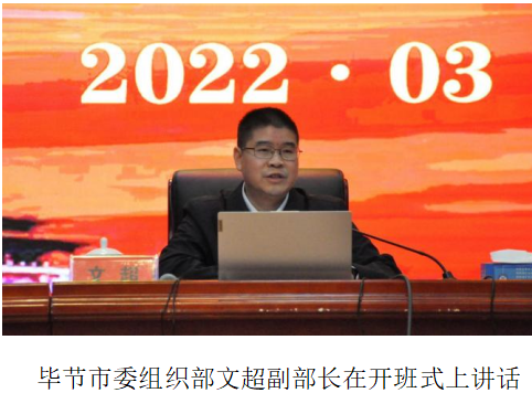 在開班式上,文超強調要深入學習貫徹習近平新時代中國特色社會主義思想,習近平總書記視察貴州重要講話及對貴州對畢節工作的重要指示批示精神,黨的十九屆六中全會、省委十二屆十次全會和市第三次黨代會精神,2022年中央1號文件和國發2號文件精神,“畢節市新時代基層干部主題培訓行動計劃”規定的必學課程,深刻領會“兩個確立”的歷史意義,樹牢“四個意識”、堅定“四個自信”、做到“兩個維護”,切實提升政治領悟力、政治判斷力、政治執行力,加強基層治理、深化農村改革、推進農業農村現代化,提升基層干部履職能力和工作水平,為建設“一區三高地、五個新畢節”貢獻力量。