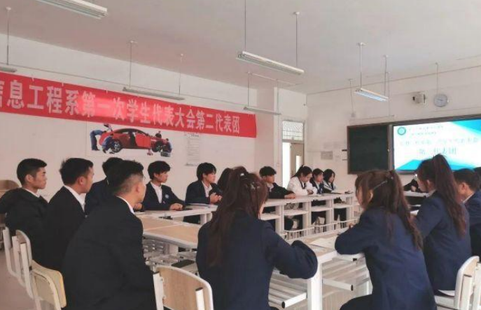 11月15日,信息工程系第一次學生代表大會于學院會議中心召開。學院團委負責人伍紹平、學生工作處負責人胡永祚、土木工程系團總支書記、學生科負責人史曉嵐、機電汽車工程系團總支書記楊雄、社會服務(wù)系團總支書記、學生科負責人熊香圓、信息工程系黨總支副書記蔡迪、信息工程系負責人黃亞男、信息工程系團總支書記、學生科負責人鄭興、信息工程系團總支副書記羅坤、信息工程系教務(wù)科負責人曹婷鈺、信息工程系辦公室負責人胡建紅、余毛云、聶春霞老師以及80名學生代表參加會議。大會由學生代表李媛、劉邦吉同學主持。