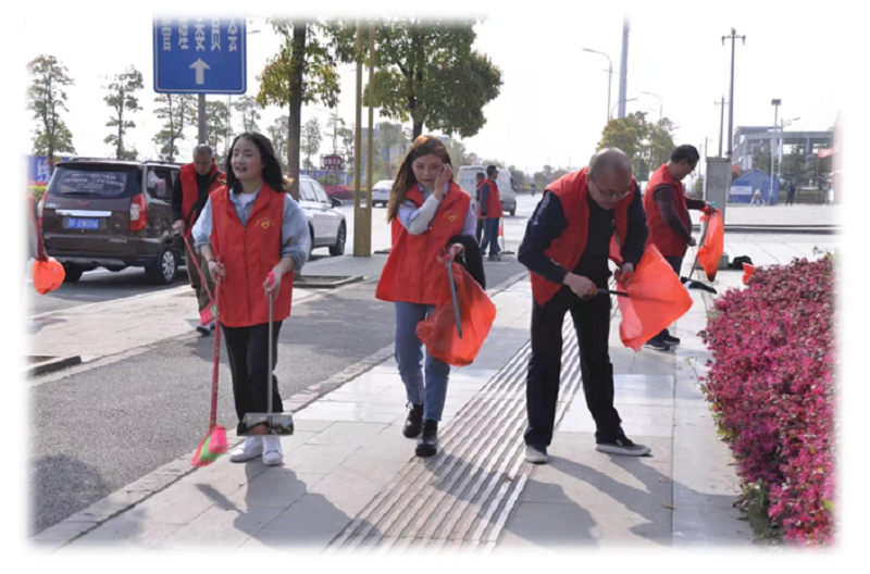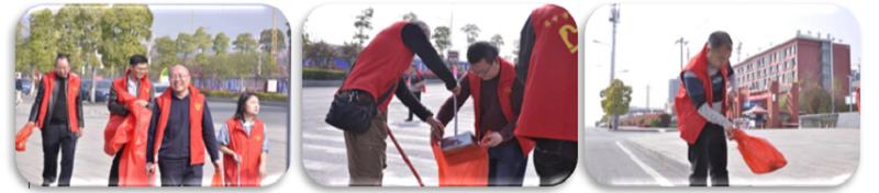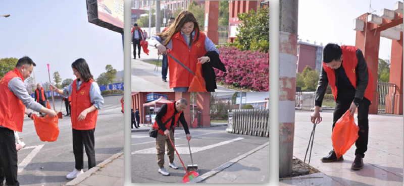 黨員同志們身穿紅色志愿者服裝,手拿衛生火鉗、鐵鏟、掃把等衛生工具,以飽滿的奉獻精神,以不怕苦、不怕累的團結協作精神,在炎炎烈日下,認真清掃學院周邊衛生死角,把散落在衛生死角的煙頭、塑料袋、包裝紙、廢棄塑料瓶等垃圾清理干凈,并分類轉投到對應的垃圾箱中,讓校園周邊環境也同樣整潔美