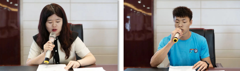 (教師代表閆夢瑩、學生代表黃杏在儀式上發(fā)言)