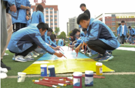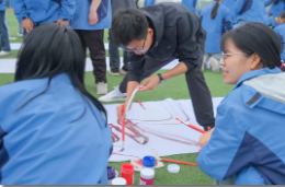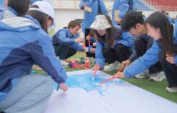 挑戰以班級為單位分為多個小組,將一幅完整的大型圖像根據小組數量拆分為多個部分,各小組分別抽取需要作畫部分進行溝通創作,最后將小組作品按順序組合在一起,形成最終成品。