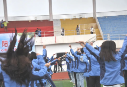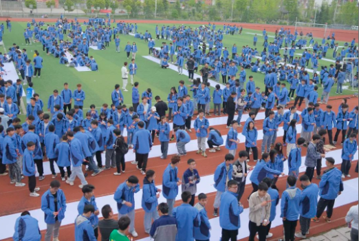 挑戰No.1以班級為單位把同學們分為多個小組,圍繞成圈,通過不斷優化分工,在150秒內一共完成3個挑戰項目。挑戰第一輪,成員跟隨老師的口號做出相應動作并念出口號,最后完成疊羅漢的動作;挑戰第二輪,在第一輪的基礎上完成疊羅漢向前走八步的動作;挑戰第三輪,從每個組當中挑出最強壯的成員,在每個組準備完成后向每個組進行撞擊,最終沒被撞散的組獲勝。