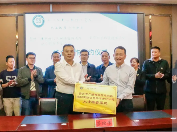 9月17日,貴州省廣電網(wǎng)絡(luò)公司畢節(jié)市分公司與我院校企合作戰(zhàn)略協(xié)議簽訂儀式在畢節(jié)工業(yè)職業(yè)學(xué)院同心樓三樓會議室舉行。貴州省廣電網(wǎng)絡(luò)公司畢節(jié)市分公司黨委書記、總經(jīng)理王松一行,學(xué)院黨委副書記、院長邱國援,副院長吳家文、黃河、黃文碧及相關(guān)部門負(fù)責(zé)人出席儀式。簽約儀式由邱國援主持。 ▲院長邱國援在會上講話 ▲副院長吳家文介紹雙方參會人員及學(xué)院基本情況,并對校企合作進(jìn)行簡要介紹 ▲廣電網(wǎng)絡(luò)畢節(jié)市分公司黨委書記、總經(jīng)理王松講話 隨后與會人員進(jìn)行交流座談,共同明確了校企戰(zhàn)略合作是互惠互利、合作共贏的舉措,通過深度合作有利于把企業(yè)文化傳遞給學(xué)生,有利于學(xué)生的成人成才,也有利于企業(yè)的事業(yè)發(fā)展。今后校企雙方將本著優(yōu)勢互補(bǔ)、資源共享的原則加大合作力度,共謀發(fā)展。 最后,院長邱國援與廣電網(wǎng)絡(luò)畢節(jié)市分公司黨委書記、總經(jīng)理王松共同簽署了戰(zhàn)略合作協(xié)議并舉行授牌儀式。